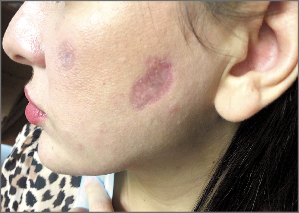 В мае 2020 г. нами выявлен случай КЛ у 43-летней больной ВИЧ-инфекцией, постоянно проживающей в одном из сел Чеченской Республики. Пациентка с 2017 г. состоит на учете в ФНМЦ по профилактике и борьбе со СПИД по поводу ВИЧ-инфекции (число CD4-лимфоцитов 101 клеток/мкл). К назначенной АРТ привержена плохо, и в течение 3 лет к медикам не обращалась. За 3 года значительно похудела, а в ноябре 2019 г. отметила появление бугорков на коже лица, а в последующем – появление очагов изъязвлений кожи конечностей и туловища (рис. 2). При обращении в медицинское учреждение по месту жительства произведена биопсия кожного элемента и заподозрена крупноклеточная периферическая Т-клеточная лимфома кожи. По приезде в Москву больная направлена на обследовании в ГБУЗ «МКНЦ им. А.С. Логинова», где диагноз онкологического заболевания снят и при исследовании препаратов кожного элемента заподозрено «паразитарное поражение кожи». Врач-инфекционист, консультировавший пациентку, собрал эпиданамнез, однако, видимо, плохо знакомый с современной эпидемиологией лейшманиоза в итоге написал, что «эпидемиологических данных о наличии лейшманиоза нет». В мае 2020 г. в ФГБУ «Государственный научный центр дерматовенерологии и косметологии» проконсультированы препараты кожных поражений и обнаружены L. tropica. Пациентке назначены специфическая (глюкантим) и АРТ, на фоне которых отмечена выраженная положительная клиническая динамика (рис. 3).