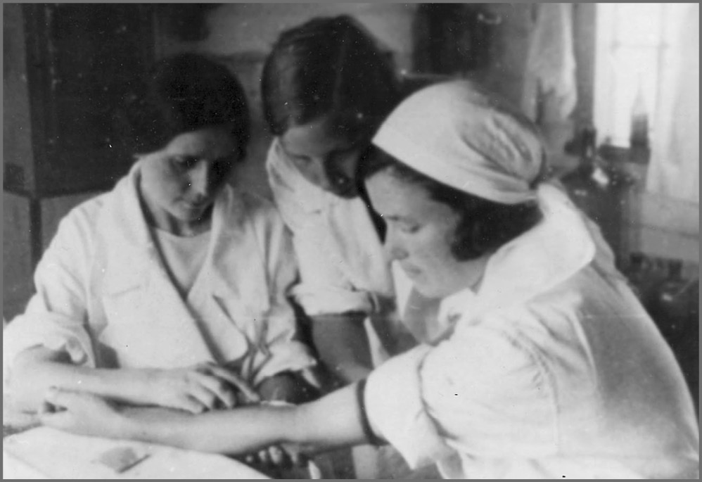 5. Fig. 4. Testing of an inactivated "brain" vaccine. E.N. Levkovich examines blood of G.N. Zorina-Nikolaeva (1939).