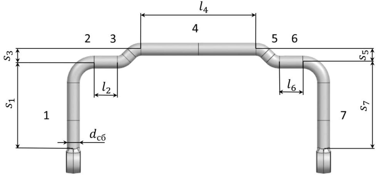 Рис. 1. Геометрические параметры стабилизатора поперечной устойчивости сложной формы\